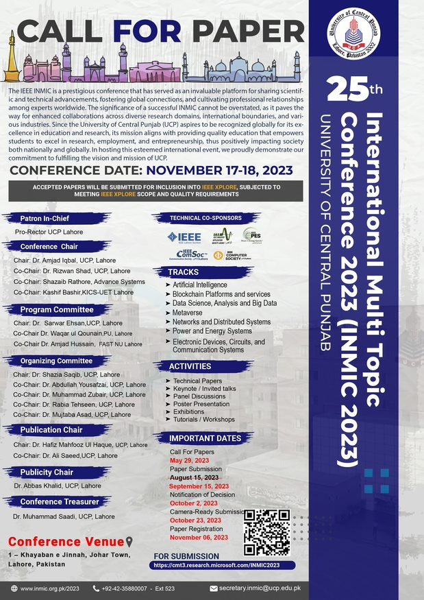 (INMIC 2023) 25th International Multi-Topic Conference (IEEE International Conference on Multi Topic)