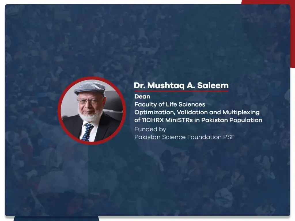 It is with great pride that the University of Central Punjab, Lahore announces that Dr. Mushtaq A. Saleem (Dean & Professor at UCP Life Sciences) has completed his funded project on “Optimization, Validation, and Multiplexing of 11CHRX MiniSTRs in Pakistan Population.” The project was funded by Pakistan Science Foundation (PSF).